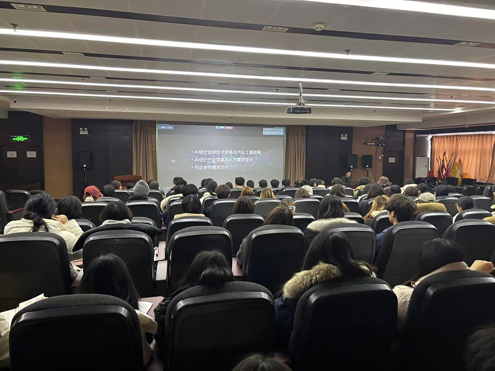近日,由教务处主办的《AI设计产业变革与人才需求变化》专题讲座在竞秀校区学术报告厅和艺术实践中心智慧教室同步举行。讲座特邀AI设计产教融合共同体常务副理事长、水母智能CEO苗奘女士担任主讲,各系主任、骨干教师代表及学生代表参加。